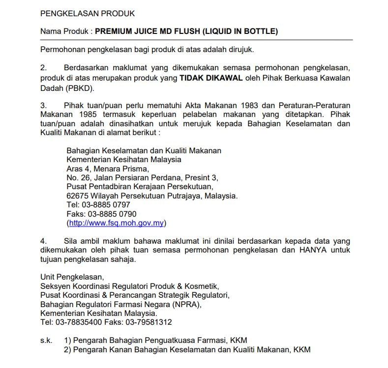 Ya! Jus ini Selamat Digunakan & Mempunyai Kelulusan KKM di bawah Kategori Pengkelasan Makanan